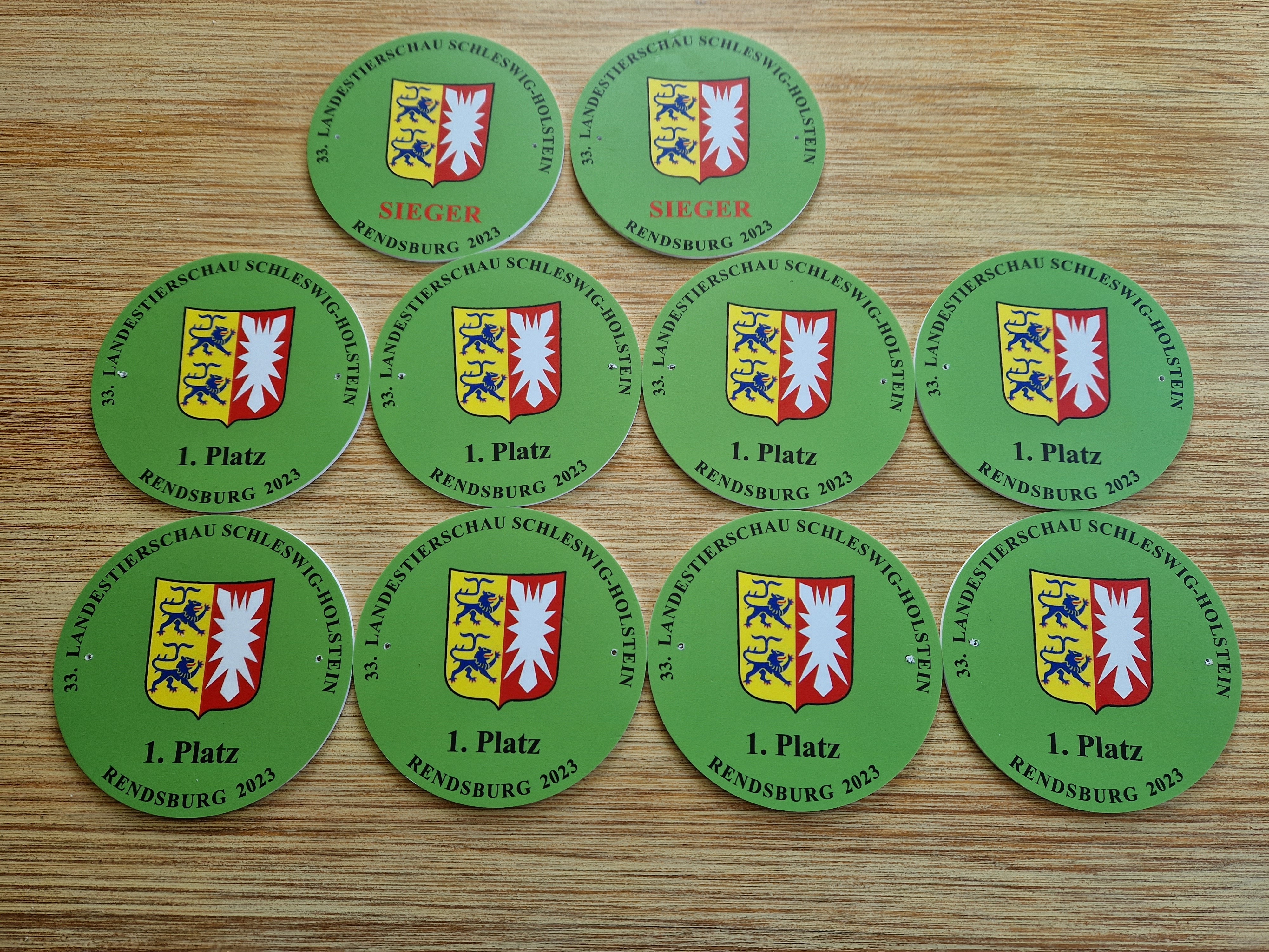 Auf der Landestierschau 2023, der Norla, habe ich 10 Tiere ausgestellt. Sie wurden in 7 Klassen gerichtet, in 6 Klassen haben meine Tiere teilgenommen, 5 davon habe ich gewonnen,