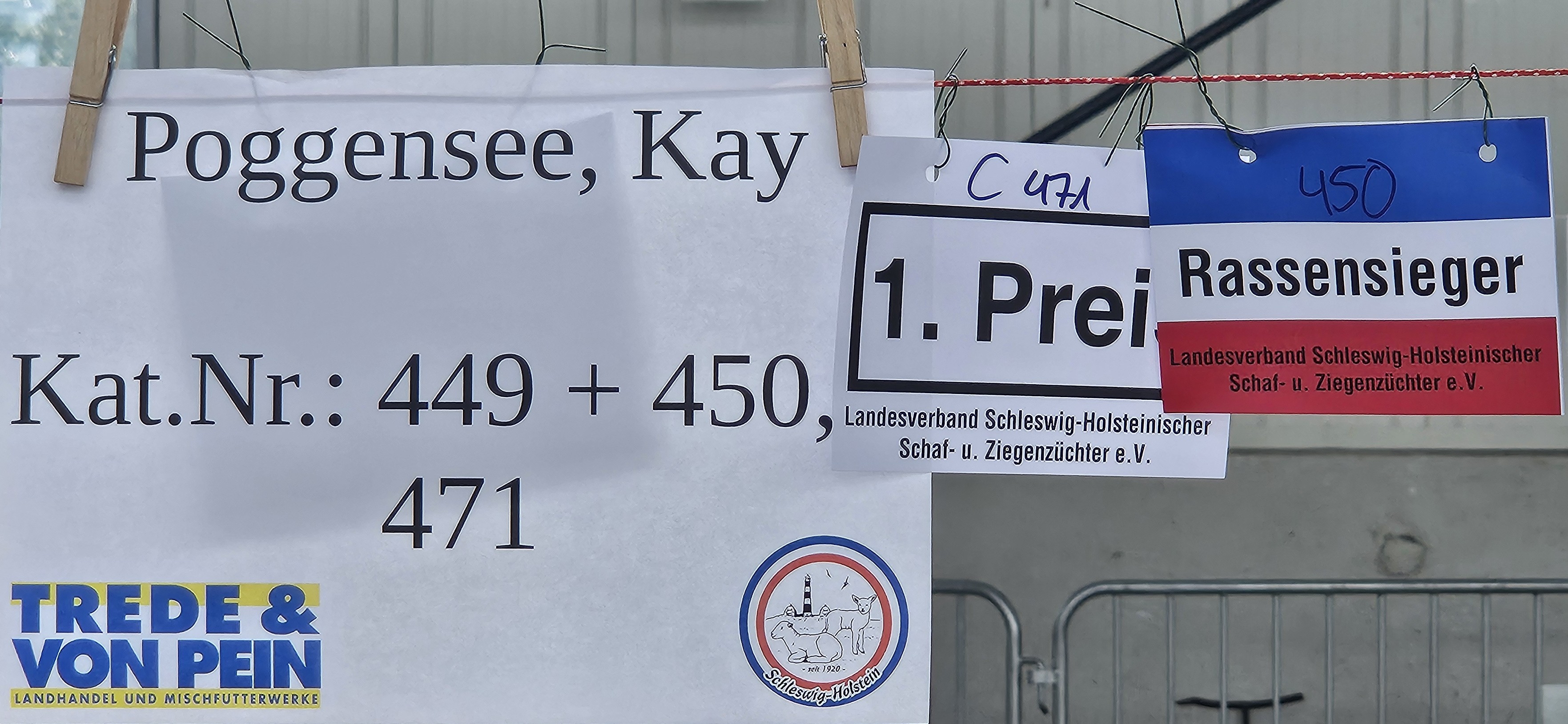Mit 4 Lämmern habe ich die Auktion des Körbezirkes Südwestholstein in Kollmar besucht. 3 Lammböcke, die in ihrer Klasse die 1a, 1c und 1d Prämien erreichten und das 1a weibliche Lamm. Doppelsieg! Im Finale der 1a Tiere hat sich dann mein Lammbock gegen mein weibliches Lamm durchgesetzt. Rassesieg und Reservesieg für meine Tiere.